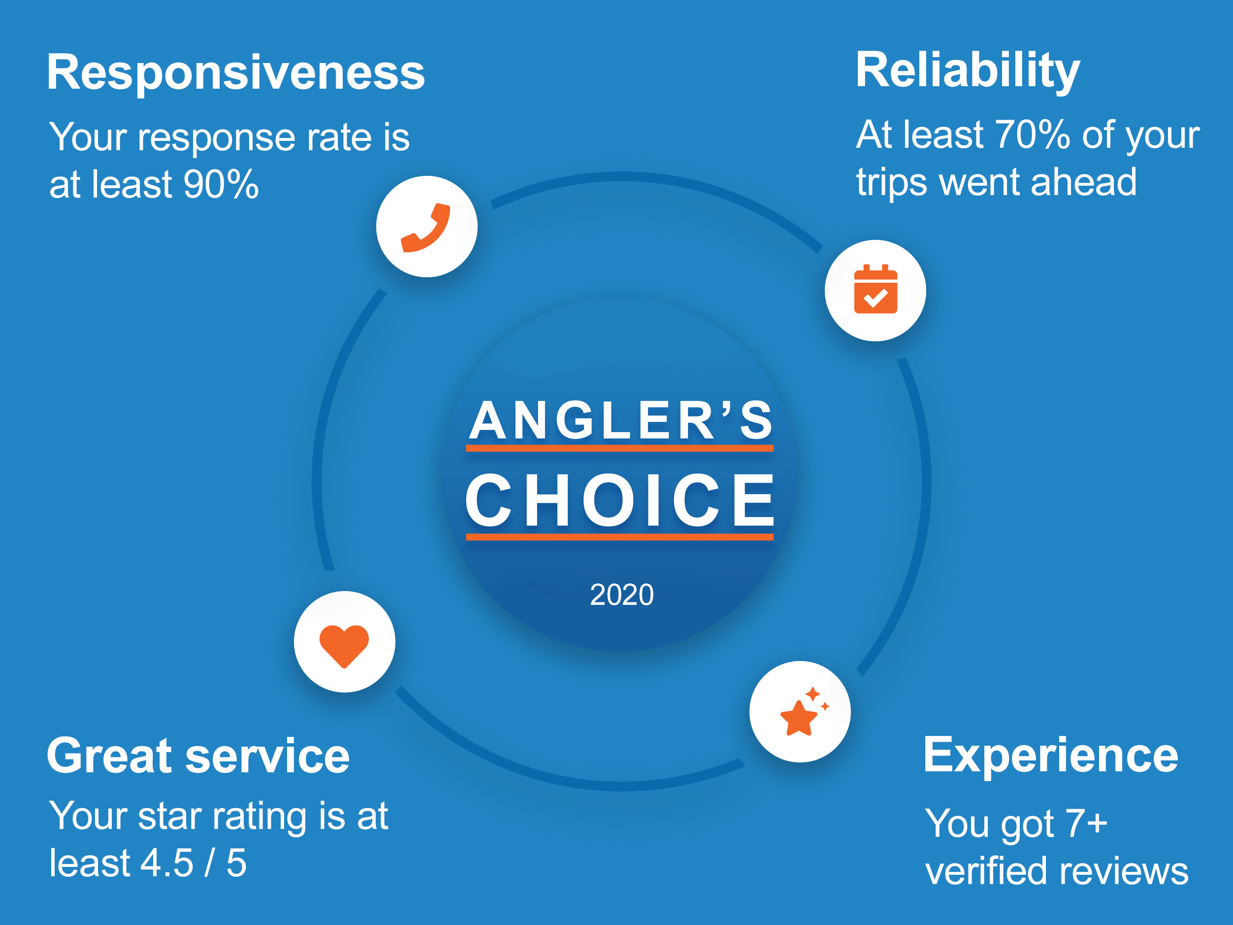 While previous awards rewarded listings with great reviews, the 2020 award looks at reliability, customer satisfaction, responsiveness, and the number of reviews from FishingBooker customers in the last year.