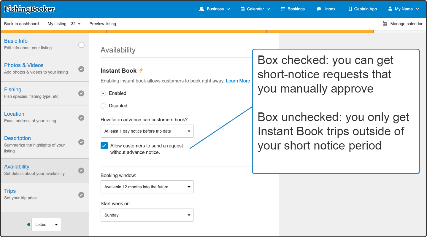 With a twofold ranking boost, a more attractive listing, and an easier booking process, there’s a lot to like about Instant Book. If you’re committed to keeping your calendar updated and set up your notice settings in a way that suits your business, it can be a very positive influence on how your charter is advertised online.