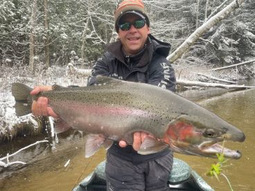I offer guiding services on the Pere Marquette River and Upper Manistee River where I fish for Brown Trout, Rainbow Trout, and Brook Trout. I also am a fishing guide on the Upper Muskegon River where I target Smallmouth Bass, Brown Trout, Rainbow Trout, and Northern Pike. My favorite fishing techniques for Steelhead on Pere Marquette River and White River are spin tackle or stripped streamers.