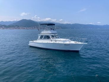 You’ll head out on 38 ft sportfishing boat. On board, you will find enough room for up to 8 people to relax, along with a inside toilet and bedroom below.