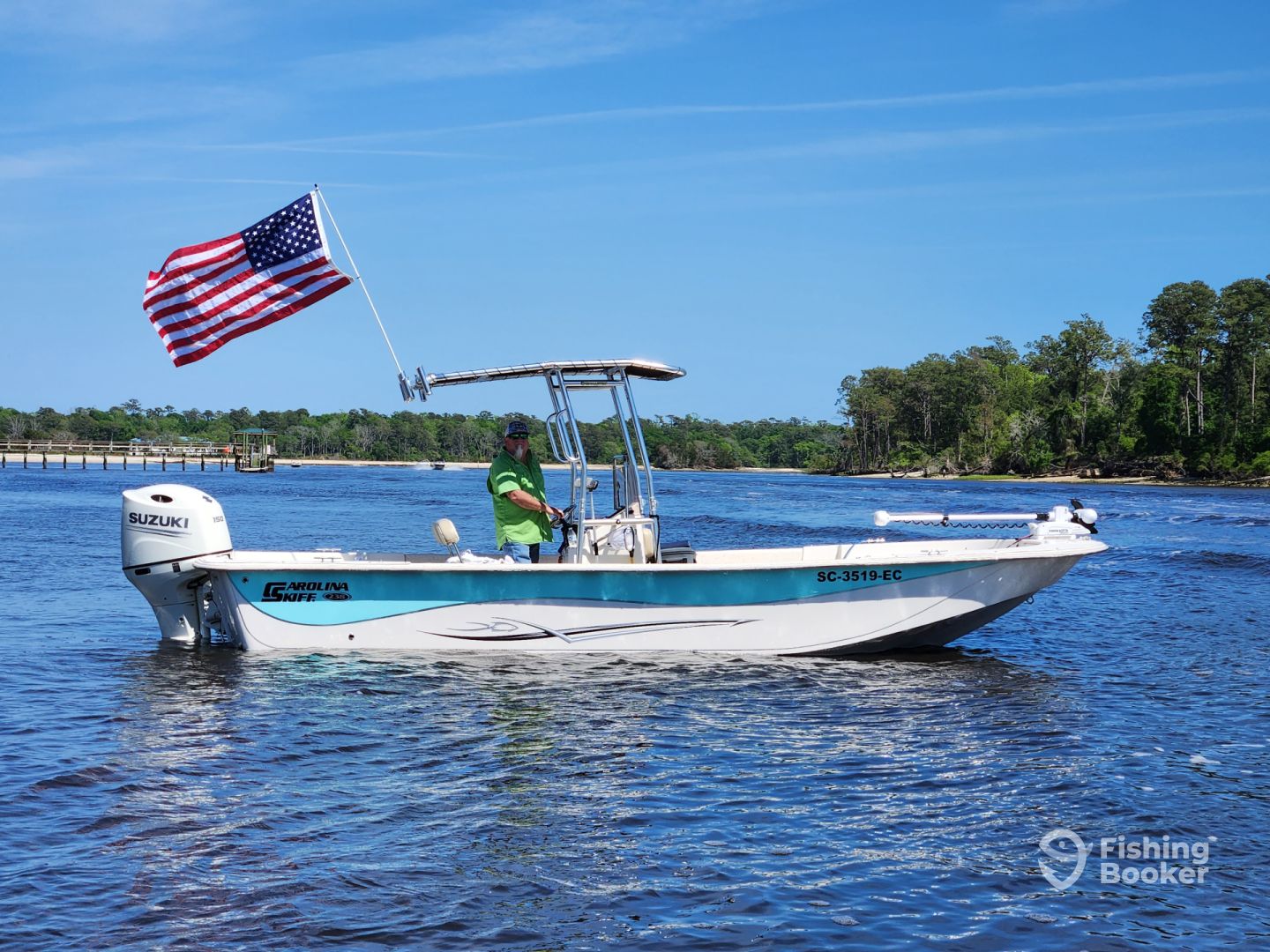 You’ll find yourself aboard a 22’ Carolina Skiff bay boat with room for 6 passengers. It comes with all the essentials. Capt. Scotty will supply rods and reels for you, along with lures. Live bait is included, but it’s good to ask about this so you know if you’ll be catching it yourself.