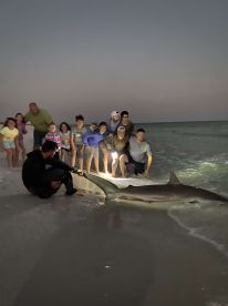 All fishing equipment needed for Trophy Sharks is provided. Additionally, we supply five chairs on each charter but have NO limit to group size. For all night trips, additional lighting is included. Lastly, an iced-down 20-quart cooler and water will be provided. Feel free to put any snacks or beverages into it.