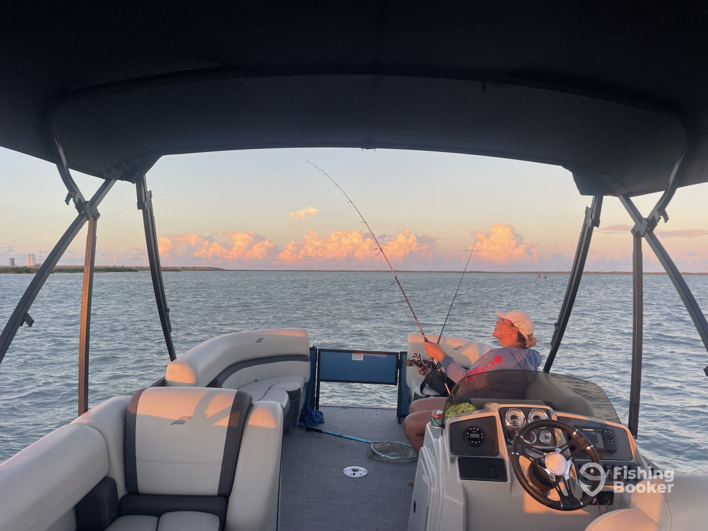 You’ll be casting lines from a 24’ Starcraft pontoon boat that holds up to 10 passengers. It comes with a fighting chair and all the essentials no fishing machine can run without. There’s a toilet on board for your convenience. Capt. Skylar has rods and reels for you, as well as lures. Live bait is included, but you should ask the captain whether you’ll be catching it yourself.