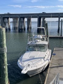 Your excursion begins aboard a 40’ Wellcraft 330 Coastal sportfishing vessel with room for 6 passengers. It has outriggers, downriggers, all the essentials. There’s a bathroom on board for your convenience. Capt. Mike has rods and reels for you, along with lures. Live bait is on offer, but be sure to ask about it so you know if you’ll be catching it yourself.