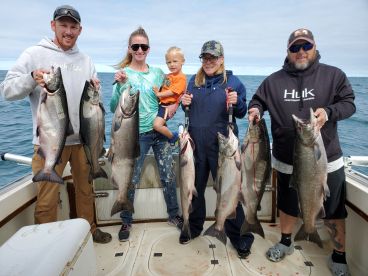 Chinook Salmon, and Coho Salmon, are the normal catches with different times of year being better for 1 type of fish or another.