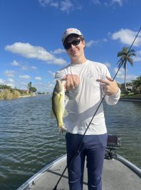 The Bass in Cape Coral’s canals are a bit smaller than the Florida giants we typically hope for but the safe calm inland waters offer a peaceful local day on the water with very rarely any wind or boat waves, and sea sickness is rarely a worry on the very calm waters and almost never have wind cancellations compared to Salt Water Charters that are frequently canceled by SW Floridas typical windy days and rough waters.