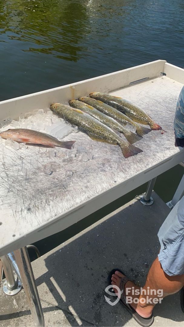 Around here the fishing is popular for Redfish, Spotted Seatrout, and Flounder. You can catch all sorts of other fish, including Bonnethead Shark, Blacktip Shark, Sheepshead, Black Drum, Ray, Shrimp, and more if you cast your line at the right time of year.