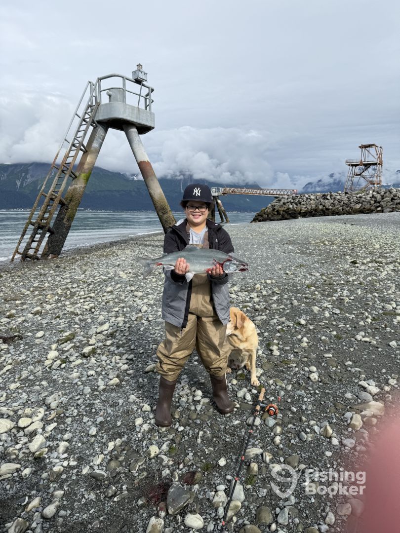 Captain Gabriel Kintzley fishes from the shore in Seaward, AK. Join him and try sight fishing for Salmon. These fishing trips are great for people who might be seasick while on a boat. First Cast Fishing has a team of professionals that can't wait to show you what these waters have to offer.