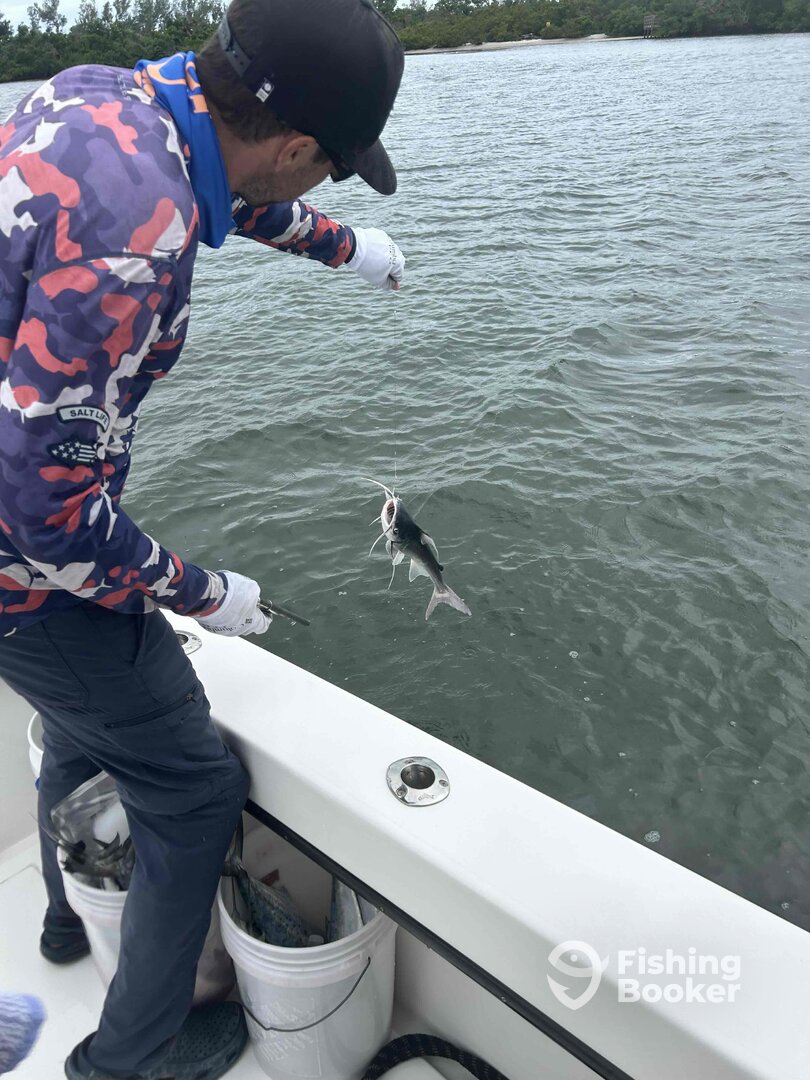 We utilize light tackle spinning rods for all of our fishing trips. We specialize in reef fishing for snapper, grouper, grunts, porgy's, spanish mackerel, king mackerel, little tunny tuna, sharks and barracuda. We also specialize in fishing Tamp Bay with live bait for snook, seatrout, spanish mackerel, sharks, and jacks
