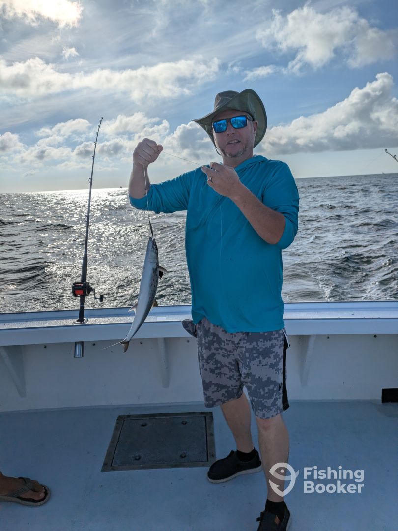 Get ready for an incredible fishing experience with Captain Bob Crisher, who has an impressive 38 years of fishing experience. Hop aboard our spacious 43' Donelle and go trolling for exciting catches like Redfish, Spanish Mackerel, Cobia, and many others. Customers can't stop raving about the roomy vessel and Captain Bob's incredible expertise. Join him for a memorable fishing trip that you'll be talking about for years to come!