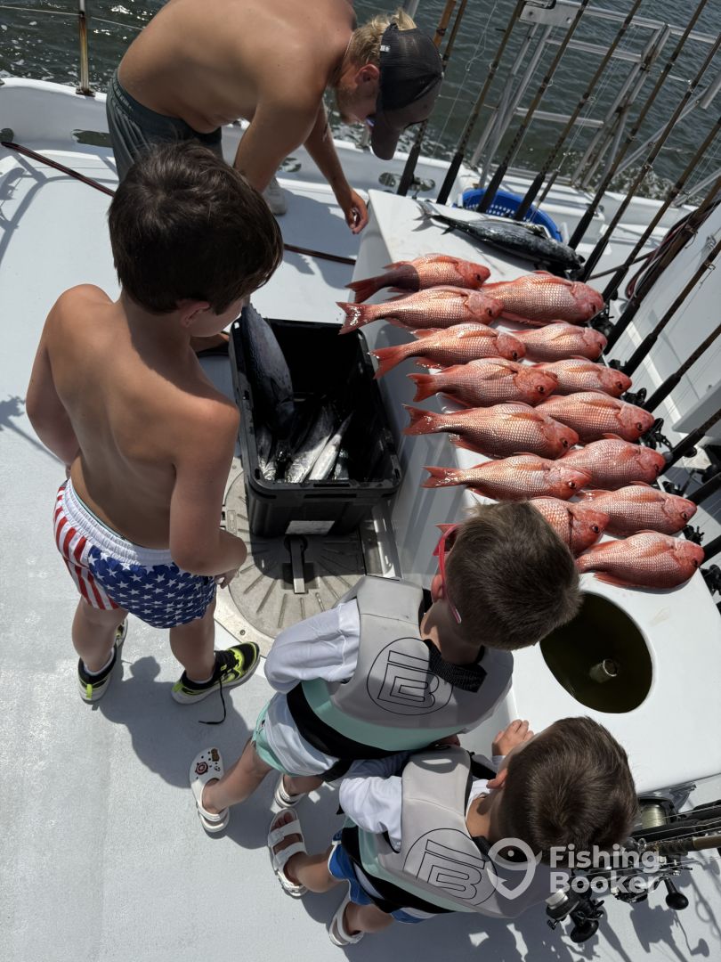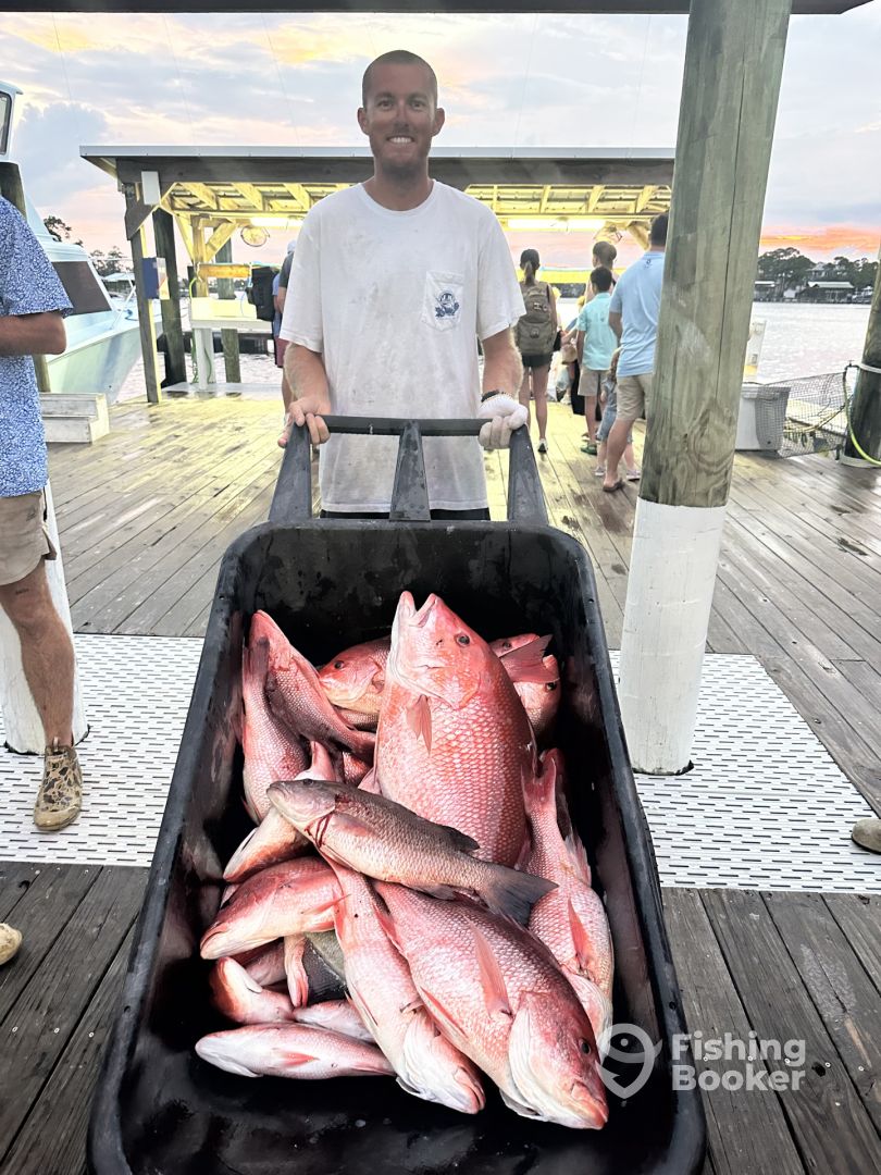 - Meet your Captain Tom Ard, a true Orange Beach native and a 5 boat owner at Zekes landing Marina, with over 40 years of offshore fishing experience. The love for fishing started at a very young age for Tom, fishing farm ponds and rivers around his house for bass and bream, or catching speckled trout and red fish off the family dock on Wolf Bay. This all transitioned to offshore fishing when his father, Captain Gloyice Ard had a custom built charter boat, a Buskins, completed 1980, the “Bollweevil” which is still in service here at Zekes. Tom grew up deck handing on the Bollweevil and ran his first real charter at 18 years old. He inherited the vessel after his dad passed away. After graduating from UWF with a degree in criminal justice, Tom married his love of his life Kim, in 1997. They purchased the Fairwater II in 1998. Since then he’s charter fished, raised a family ( son Garrett is working on his Masters degree at Mississippi State) and cared for the boat, trying to make her a better boat each and every year. Along the way they purchased the Water Dog, a 34 ft crusader, continued fishing on the Bollweevil. In 2019 he and business partner Captain Brett Russell added the SouthWind and the TradeWinds in 2022. Captain Brett started his fishing career at just 16 years old working with us during the summer. Training young men into captains has been one of Tom’s strengths, along with having a fishing team that feels like a family. We all work together and help each other with the boats and in fishing which gives the whole fleet an advantage. One of Tom’s passions has been finding older boats and making them look new again with a strong knowledge about engines, generators, and very importantly electronics that keep you safe and help catch fish. This has been his hobby inside his fishing career. In his 50s now, Tom still has a passion for hunting,and fishing, going on adventures with his family (which includes his two Labrador retrievers) and boats. Tom also runs a 64 ft Viking sports fisher for his lifelong friend, fishing marlin tournaments, traveling on vacations just to hunt and fish, and still loves a good boat ride on an impressive craft. And lastly he really loves to watch the joy and excitement catching fish brings to his clients and friends who still come back to fish year after year.