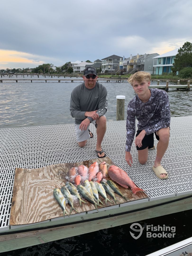Capt. Justin always knows where to put you on the fish. My wife and my sonโ€™s friend got their first Mahi. Great memories...