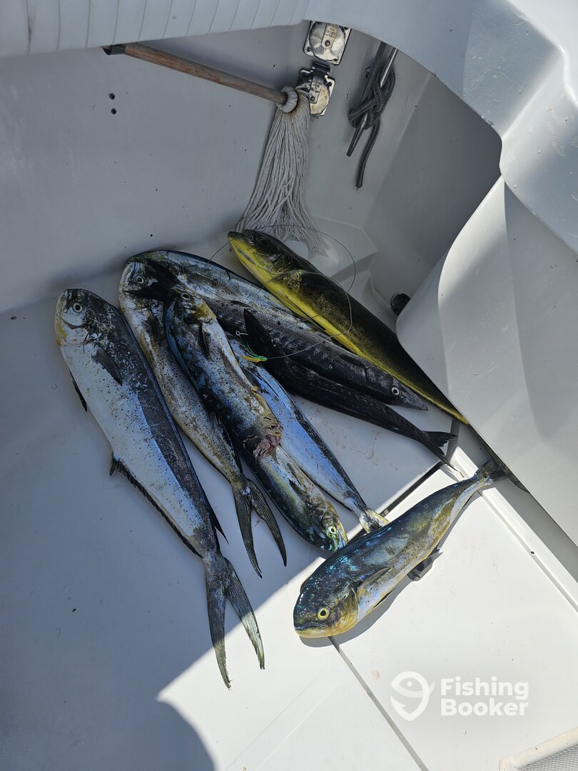 - The captain does big game fishing, deep sea, and trolling using live bait.