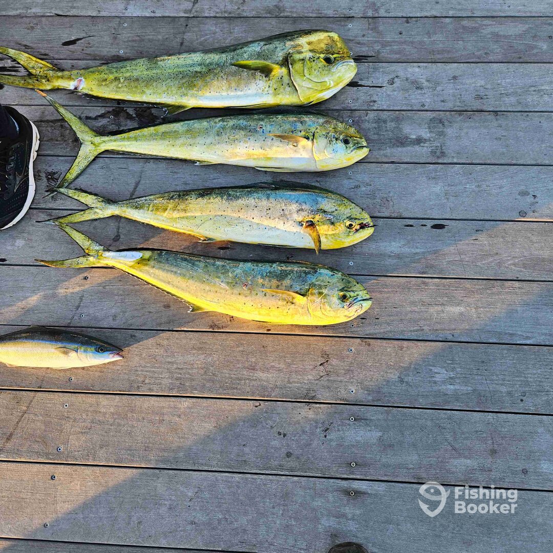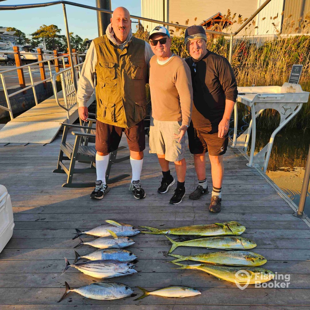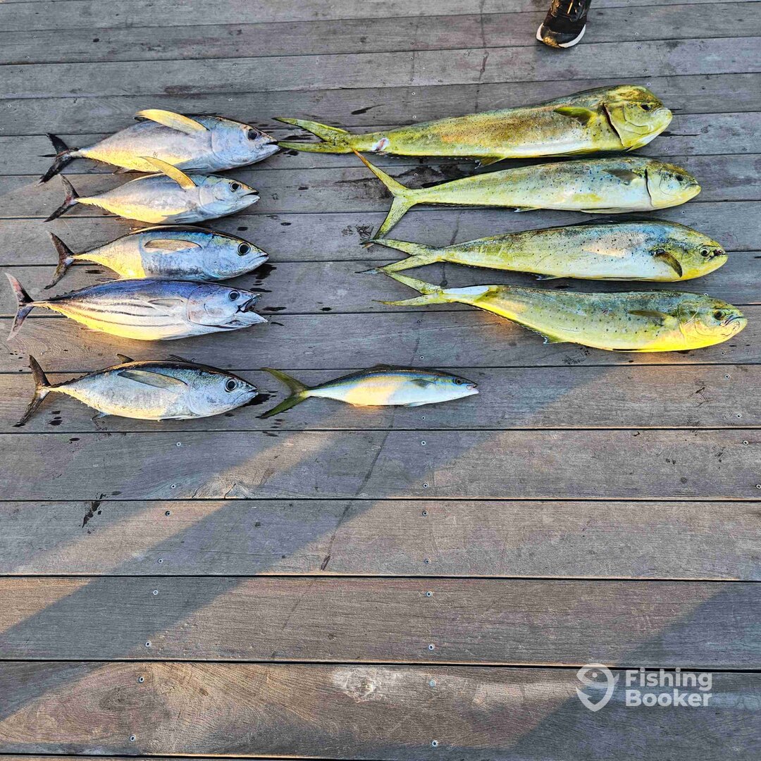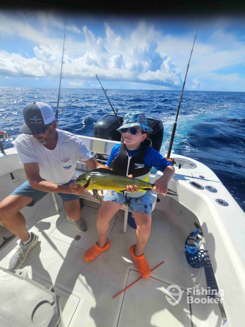 - We fish a variety of styles to target a variety of species. When offshore in the Gulf Stream, we primarily troll(high speed, lures, ballyhoo). The species we target offshore are Blue Marlin, White Marlin, Sailfish, Wahoo, Tuna, Mahi Mahi. Nearshore 30 miles and closer, trolling live bait is the key to success. Targeted species are King Mackerel, Mahi Mahi, Sailfish We bottom fish in this range as well using a variety of live bait, cut bait and squid to capture a variety of species. Targeted species are grouper, snapper, sea bass, trigger fish and grunts. Nearshore we generally troll spoons for Spanish Mackerel and Bluefish. We drift cut bait to target big sharks.