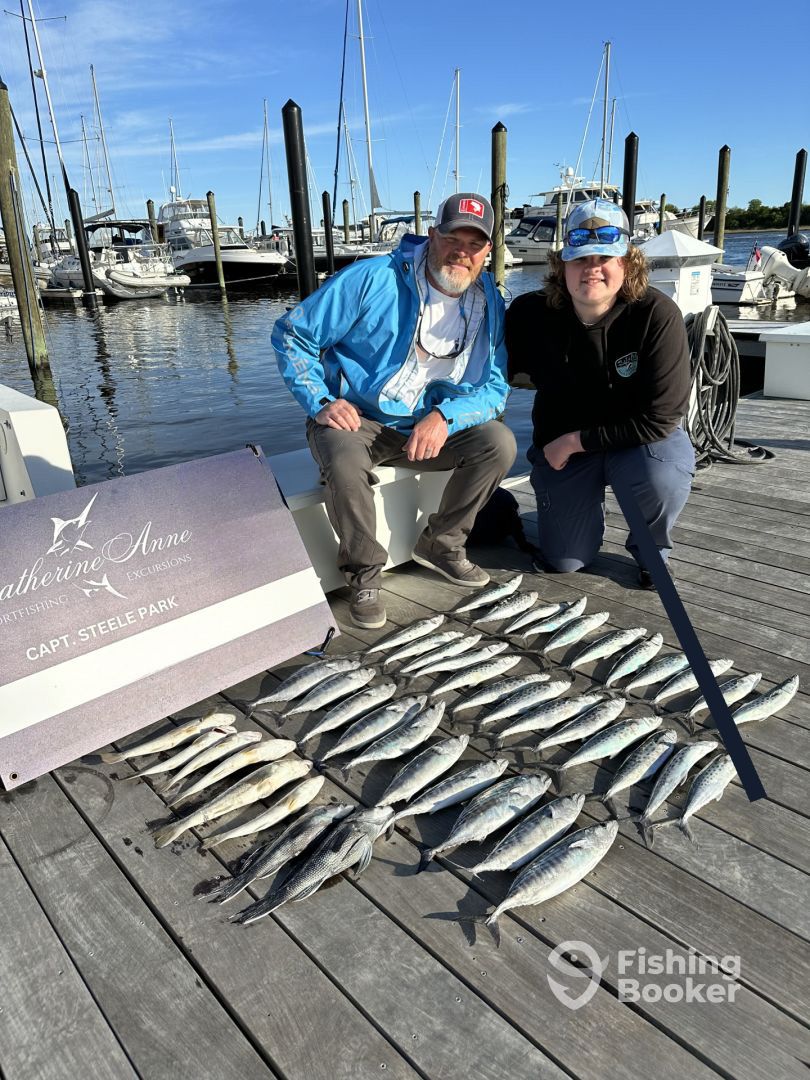 - We fish a variety of styles to target a variety of species. When offshore in the Gulf Stream, we primarily troll(high speed, lures, ballyhoo). The species we target offshore are Blue Marlin, White Marlin, Sailfish, Wahoo, Tuna, Mahi Mahi. Nearshore 30 miles and closer, trolling live bait is the key to success. Targeted species are King Mackerel, Mahi Mahi, Sailfish We bottom fish in this range as well using a variety of live bait, cut bait and squid to capture a variety of species. Targeted species are grouper, snapper, sea bass, trigger fish and grunts. Nearshore we generally troll spoons for Spanish Mackerel and Bluefish. We drift cut bait to target big sharks.