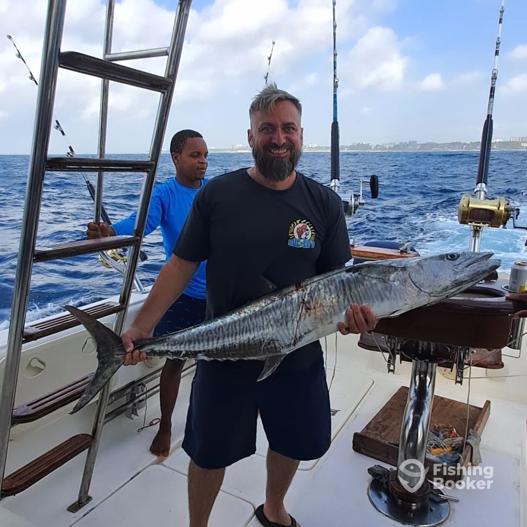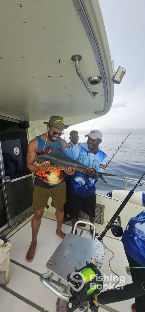 - **Mombasa's Best Fishing Experience** Welcome aboard VIENNA! A day aboard it isn’t just about fishing—it’s about experiencing the ocean in its rawest form, under the guidance of a true master of the craft.Navigated by Captain Shazid, bringing you stories from the deep seas off the Kenyan coast, where adventure and the thrill of the catch are a part of everyday life. VIENNA isn't just a vessel,she's a Legacy, Equipped with state-of-the-art technology and fishing gear, VIENNA is a distinguished Riva 34 summertime, spacious and comfortable, perfect for long hours out at sea, whether you're on deck battling a fish or relaxing inside. The beauty is powered by 2 Cummins engines, pushing 500 horses combined. When it comes to deep-sea fishing.,whether you're after the elusive marlin, sailfish, broadbill, or the feisty yellowfin tuna,wahoo, dorado and kingfish, this boat offers the perfect platform to land your dream catch. Her stability and speed ensure we can get to the best fishing grounds swiftly, maximizing your time in the sea. Fishing on VIENNA isn’t just about the equipment; it’s about the experience. With over 40 years of navigating these waters, I can confidently say that no two days are the same. The thrill of spotting a massive school of fish or feeling the tension on the line when something big bites is an adrenaline rush like no other. Over the years, VIENNA has hosted everyone from seasoned anglers to first-time fishermen, each leaving with a story to tell.