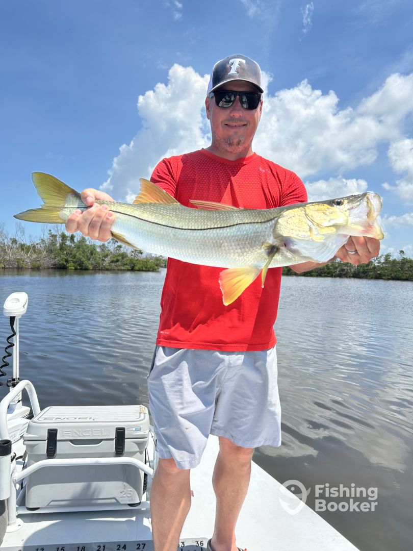 I am a die hard Tarpon fanatic! I target giant tarpon on the beach and in the back country. We will throw artificial baits and live baits for these silver kings! Snook, Redfish and trout are some other species we target year round. Fish the back country of charlotte harbor and the flats of lemon bay! I also offer fly fishing trips for Tarpon, Snook and Redfish. Night fishing is a great way to target these species on the fly rod!