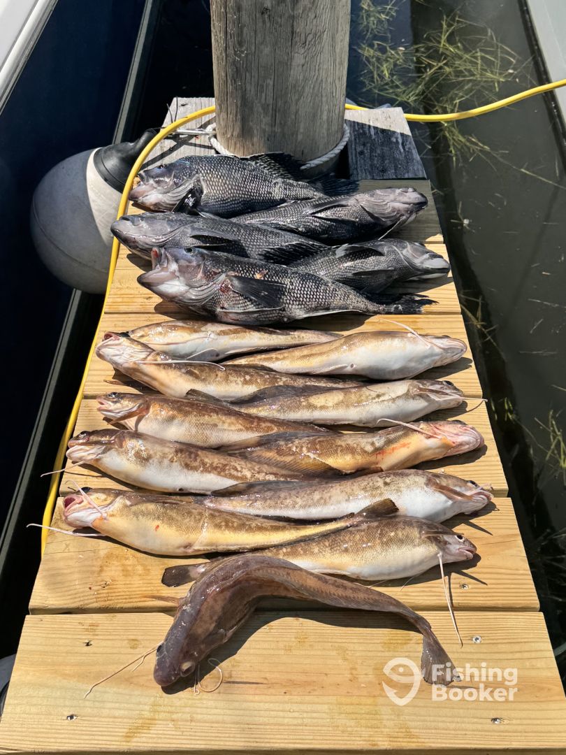 Went fishing with my seven year old twins, and grandpa, four of us in total. Really great trip caught our limit of Black Sea...