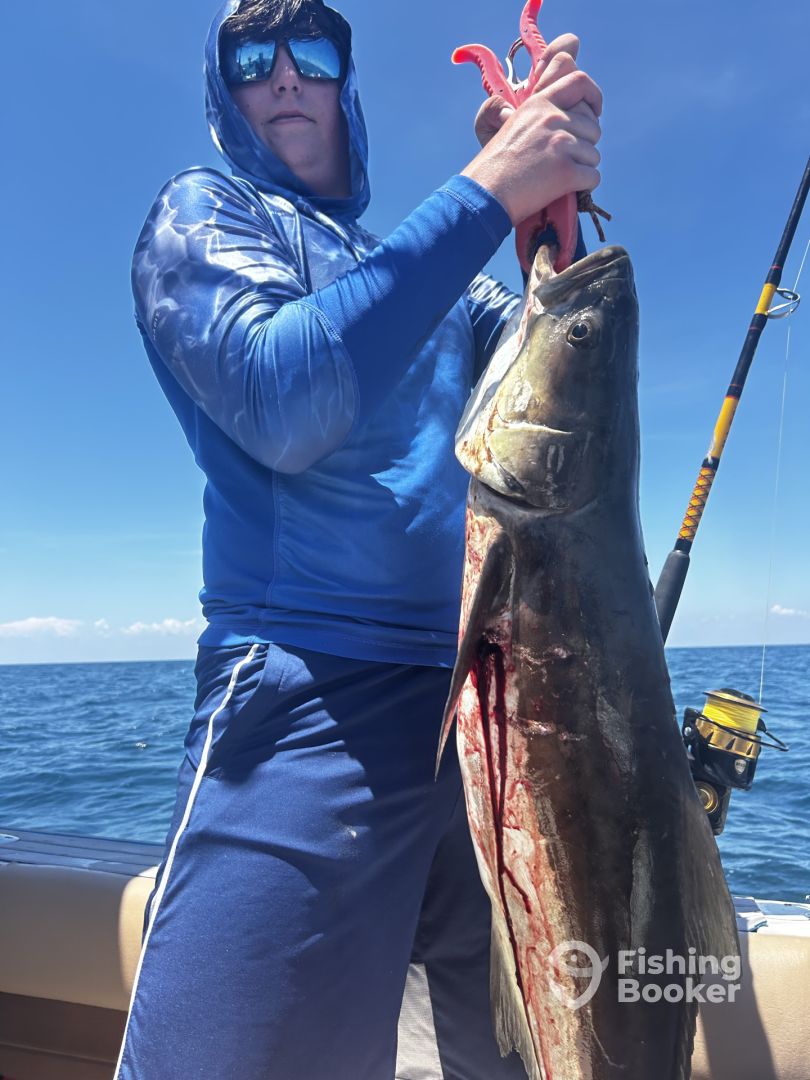Hooked A TON of huge Cobia!ย  So much fun trying to land them before the GIANT 7-8 feet sharks we could see swimming around...