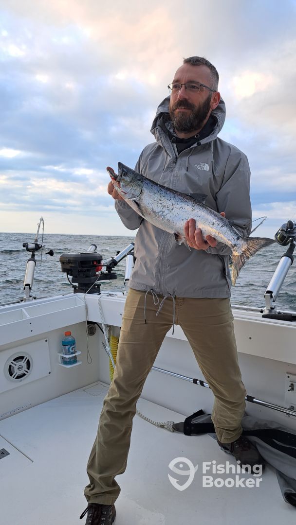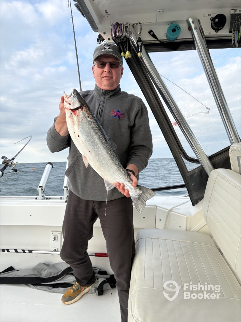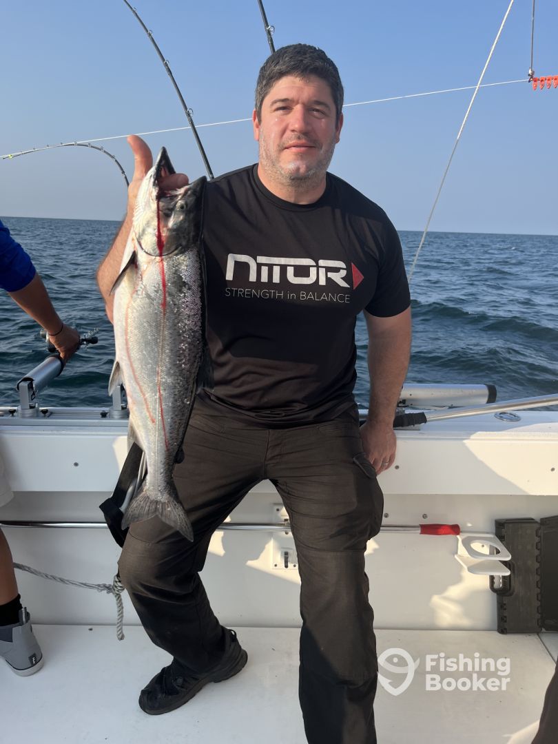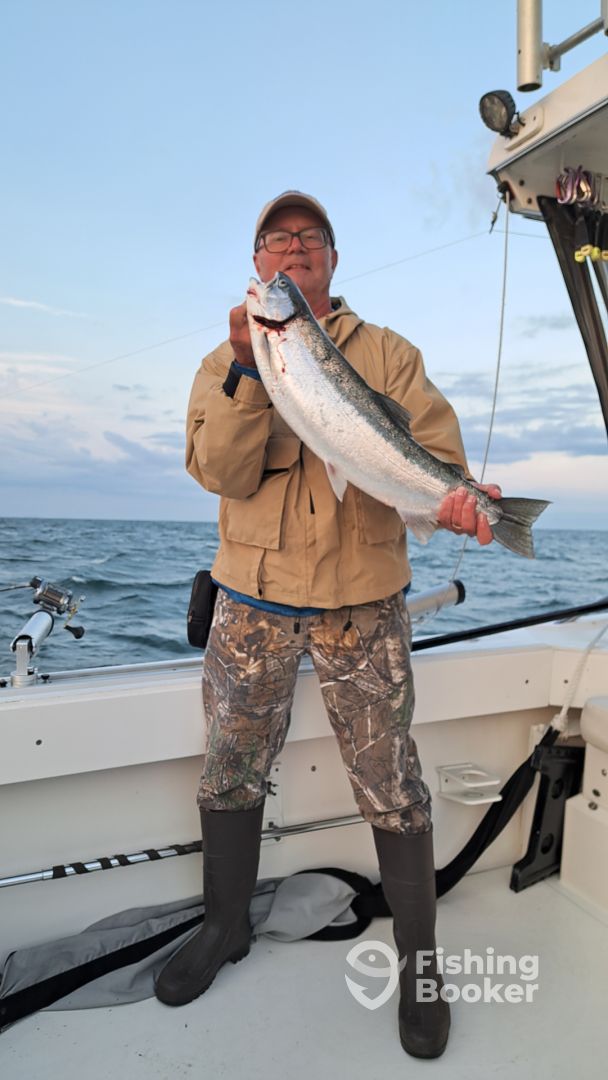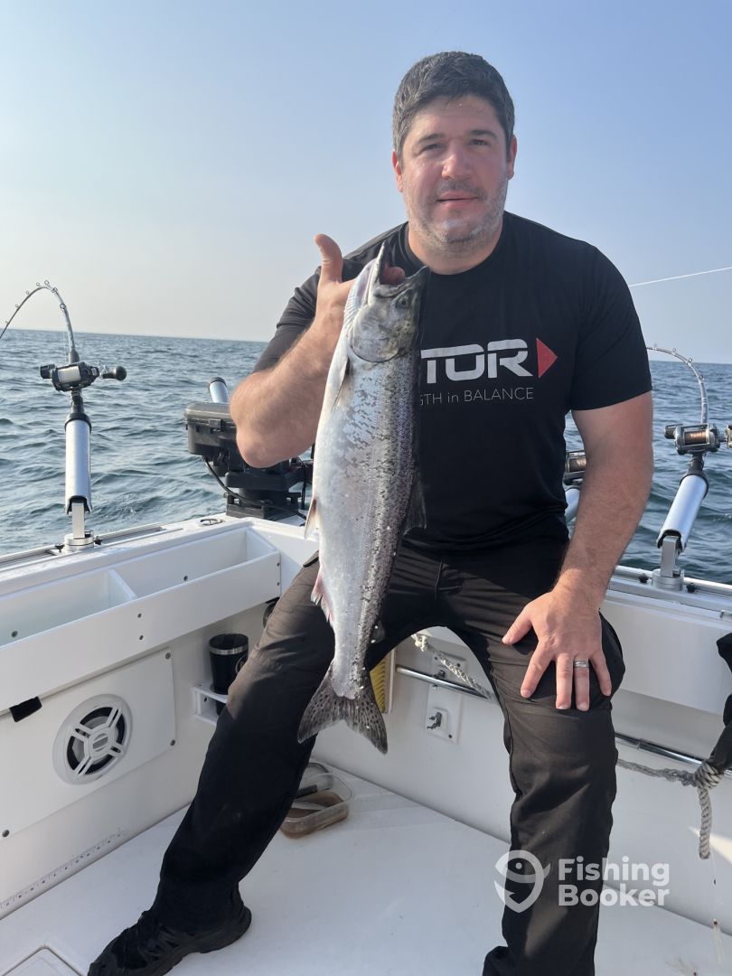 - As a Lake Ontario charter for salmon and trout our main approach is trolling. Through the use of down riggers, wire divers, lead cores and copper lines, we deploy several if not all in order to insure we are doing our utmost to get you fish in the boat! We are very aggressive in our efforts and don’t simply just drive around the lake waiting for a bite. We make it happen. Through the use of those various rods and techniques along with the latest in gps ,and fishfinder technology we find the fish and stay on them. Some captains and boats just don’t work hard or even know how to! Not us, we never stop moving and adapting to the daily conditions. That’s the fun for us. The fun for you is battling the days catch! From trophy browns to legendary kings! We have and do it all! Just doesn’t get any better than this.
