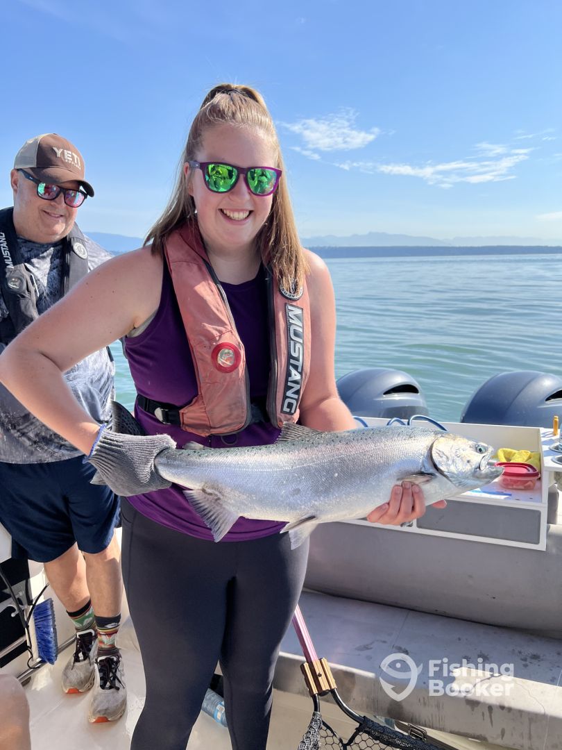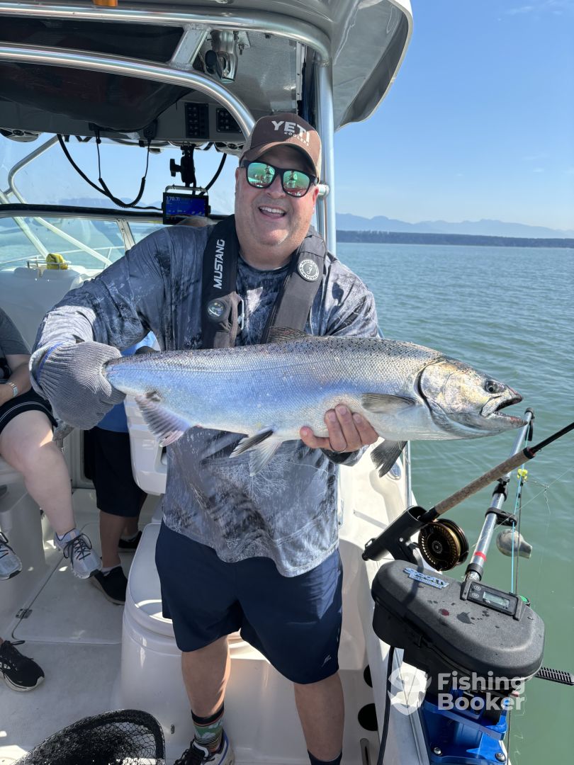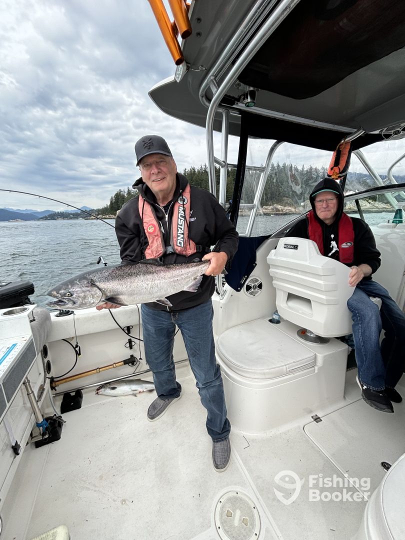 - Early on in the season when the fish are aggressively feeding, both artificial gear and bait work equally well. During this time, we tend to run artificial gear more often as it's faster to get the gear into the water and requires less frequent checking to ensure it's running correctly. This translates to more time in the water and more fish on the line. As the season progresses and the salmon get closer to their home river systems, their feeding behaviour changes significantly. While artificial gear can still be effective, we switch to running bait almost exclusively. At times we will use spinning gear to cast into congregated schools of coho and pink salmon. The conditions need to be appropriate for this technique to be productive. For the most part, we are trolling using downriggers to run our lines at designated depths where the fish are holding. When a fish hits, the line releases from the downrigger allowing you to enjoy the fight without weight on the line.