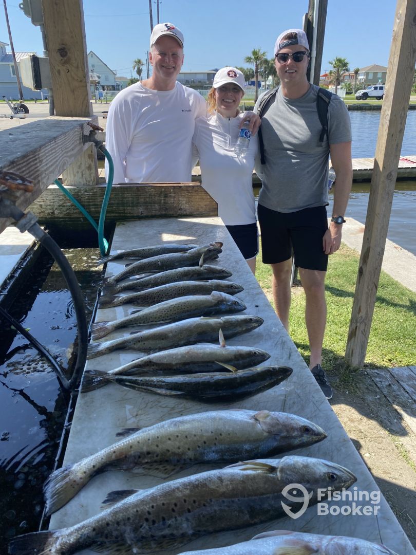 - Frenzy Guide Service Specializes in Wade and Drift Fishing with Artificial & Live Bait for Speckled Trout, Redfish & Flounder Galveston bay and its surrounding waters are a thriving ecosystem and excellent fishing destination for anglers. From wade and drift fishing to venturing to near shore coastal waters, Captain Chris will do his best to make your day of fishing a trip to remember and will work with you to customize the day of fishing based on your wishes. Full and half day trips can be tailored for seasoned anglers or a first-time family outing.