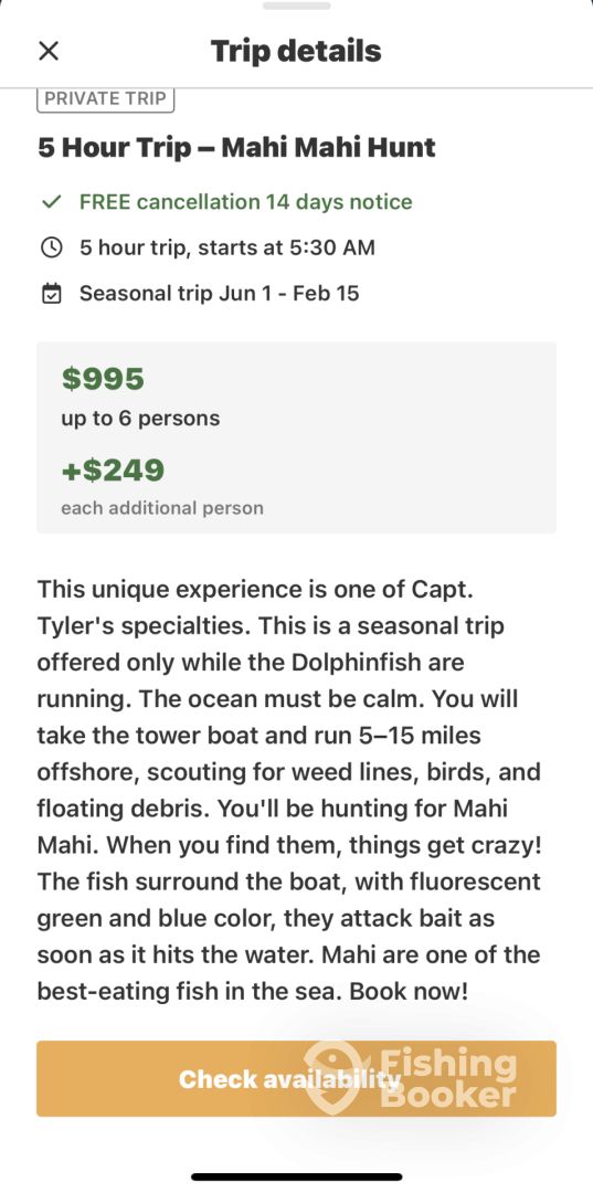 - Fishing being Captain Tyler's true passion, there's nothing he enjoys more than to be out on the water chasing fish. He likes taking people out and sharing the experience with them. The excitement that shows on people's faces when they make a good catch is something the captain enjoys the most. It reminds him of him when he was starting for the first time. In his own words, "My dad taught me to fish when I was 3 years old. I have been obsessed ever since." Captain Tyler and his team will do their best to make sure your stay on the water is unforgettable.
