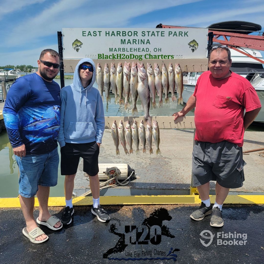 Lake Erie Walleye roam the open waters following the baitfish. We target these roaming Walleye with a trolling presentation that allows us to place baits at strategic depths where the Walleye are feeding. Our trolling methods are very precise and and we can repeat presentations allowing our guests to catch Walleye at the best possible rate. Tournament fishing has exposed me to adapting to hourly changes on the water. Attention to these details transfers into my customers success. Drift and Casting worm harnesses is also a very productive and fun method to catch Walleye. Many prefer the drift and cast methods. It does require that you make repetitive casts to entice the Walleye to take your presentation. If you enjoy the hands-on feeling of a Walleye striking your lure, Drift and Casting might be just what you want. We will teach you how to and explain why we do things certain ways to maximize or catch rate. Expect a hands-on experience, when aboard BlackH2oDog. Tight Lines