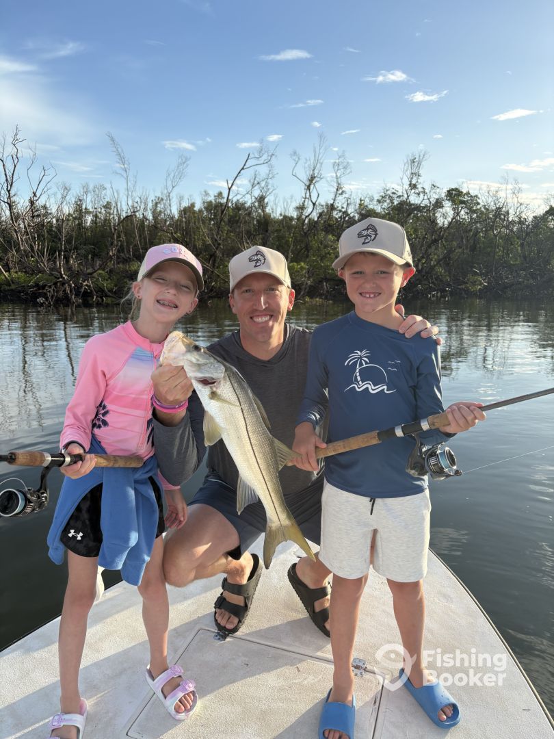 - Fishing mangroves and oyster bars for redfish, snook, and tarpon. Also patrolling the flats and beaches for tarpon.