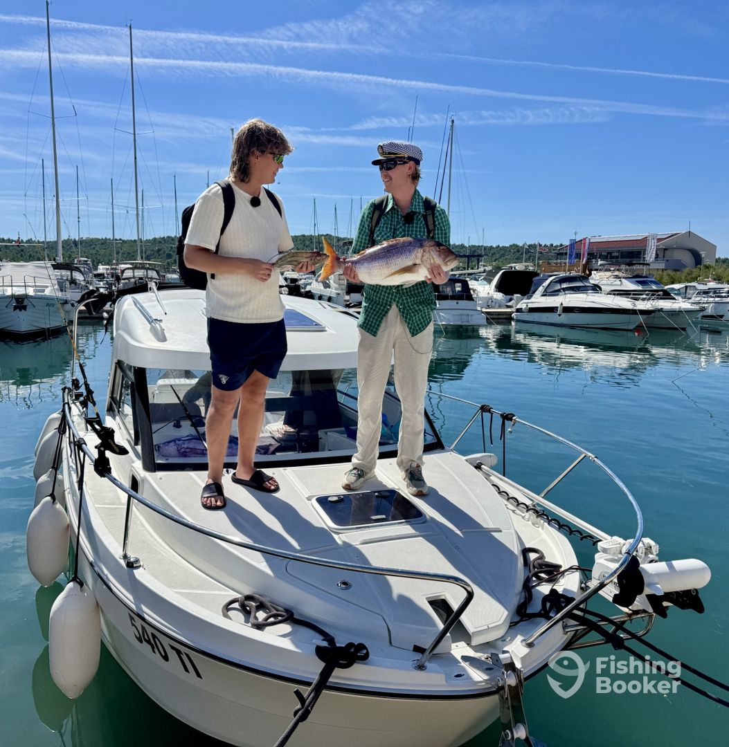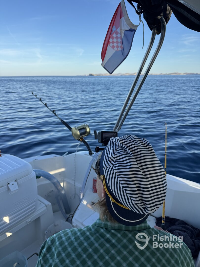 On the 25th of August, 2023, two enthusiastic anglers from the USA arrived at Valfinity Sea Adventures Charter in Pirovac, eager to embark on a journey to catch one of the most elusive and intelligent creatures of the Adriatic Sea. The anticipation was palpable as they prepared for a day on the water, hoping to outsmart the cunning big fish that call these waters home. Our day began in the early morning hours, with the sun just beginning to rise over the horizon, painting the sky in hues of pink and orange. The calm before the hunt. Before we could pursue our main quarry, we needed to secure the perfect baitโ€”live squid. With precision and skill, we caught our bait, knowing that it would play a crucial role in our quest. With our squid securely in the live well, we turned our attention to finding the optimal fishing spot. This was no ordinary search. Armed with the best sonar technology, we spent a meticulous hour scanning the depths of the Adriatic, searching for the perfect underwater terrain that would likely harbor our target. It was a calculated decision, based on years of experience and the latest in fishing tech. Finally, the moment arrived. We released our bait into the deep blue waters and waited with bated breath. It didn't take long. Within 15 minutes, the first strike hitโ€”a fierce battle ensued, but alas, the fish managed to escape, leaving us with a tantalizing taste of what was to come. The adrenaline was pumping, and the excitement only grew. Not long after, another strike! This time, it was a solid hookup. The fight was intense, every angler's dreamโ€”a true test of skill, patience, and strength. The fish was relentless, but so were we. After a hard-fought battle, we managed to bring the magnificent creature to the boat. It was a triumphant moment for our American guests, who had traveled halfway across the world for this experience. As the day drew to a close, we returned to Pirovac, our hearts full and our spirits high. We may not have caught every fish that bit, but the one we did was a testament to the skill and determination of our crew and our guests. The hunt for the smart one was a success, and the memories made on this trip will undoubtedly be cherished for years to come. This is what Valfinity Sea Adventures is all aboutโ€”the thrill of the chase, the beauty of the Adriatic, and the joy of sharing unforgettable moments with fellow anglers from around the world.