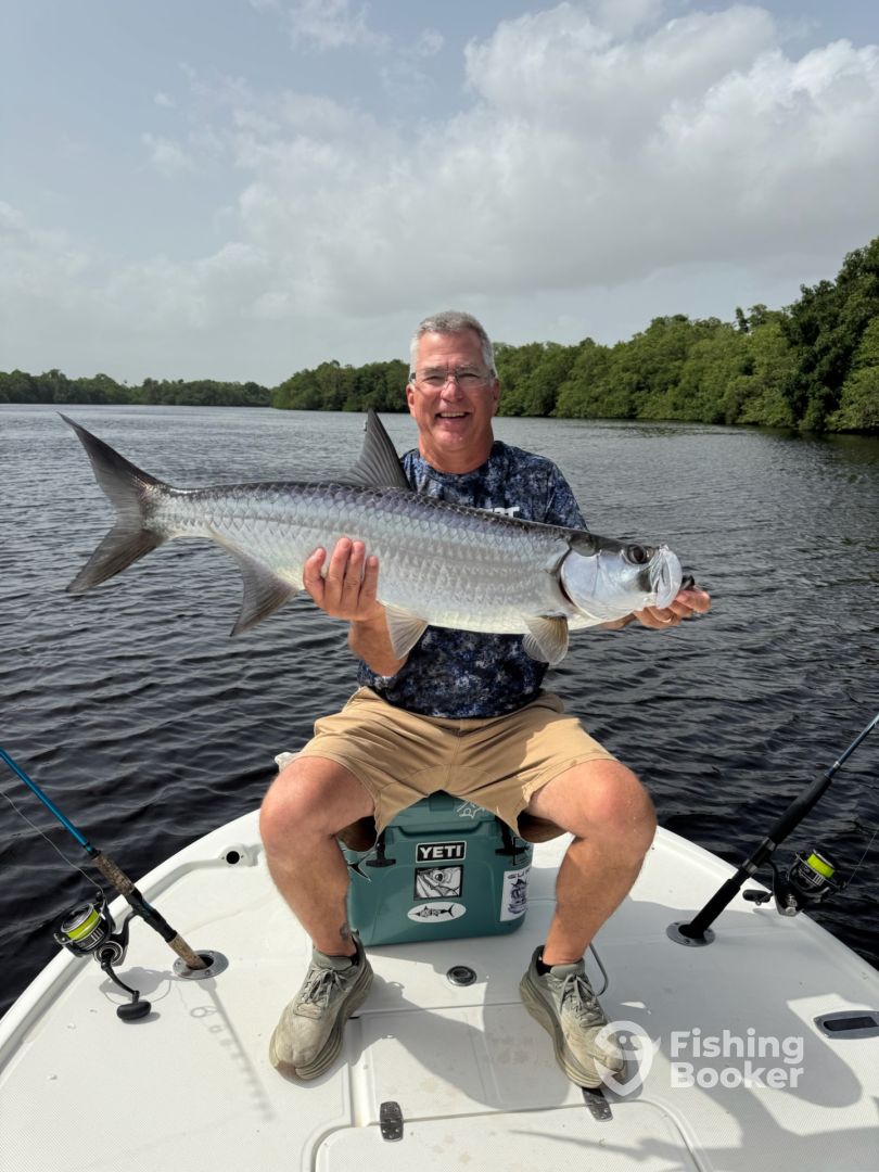 - Depending on the weather and how the Tarpons are behaving i can choose to fish for them on live baits could be drifting or trolling also anchor with dead bait and chum. Fly flishing its also available.