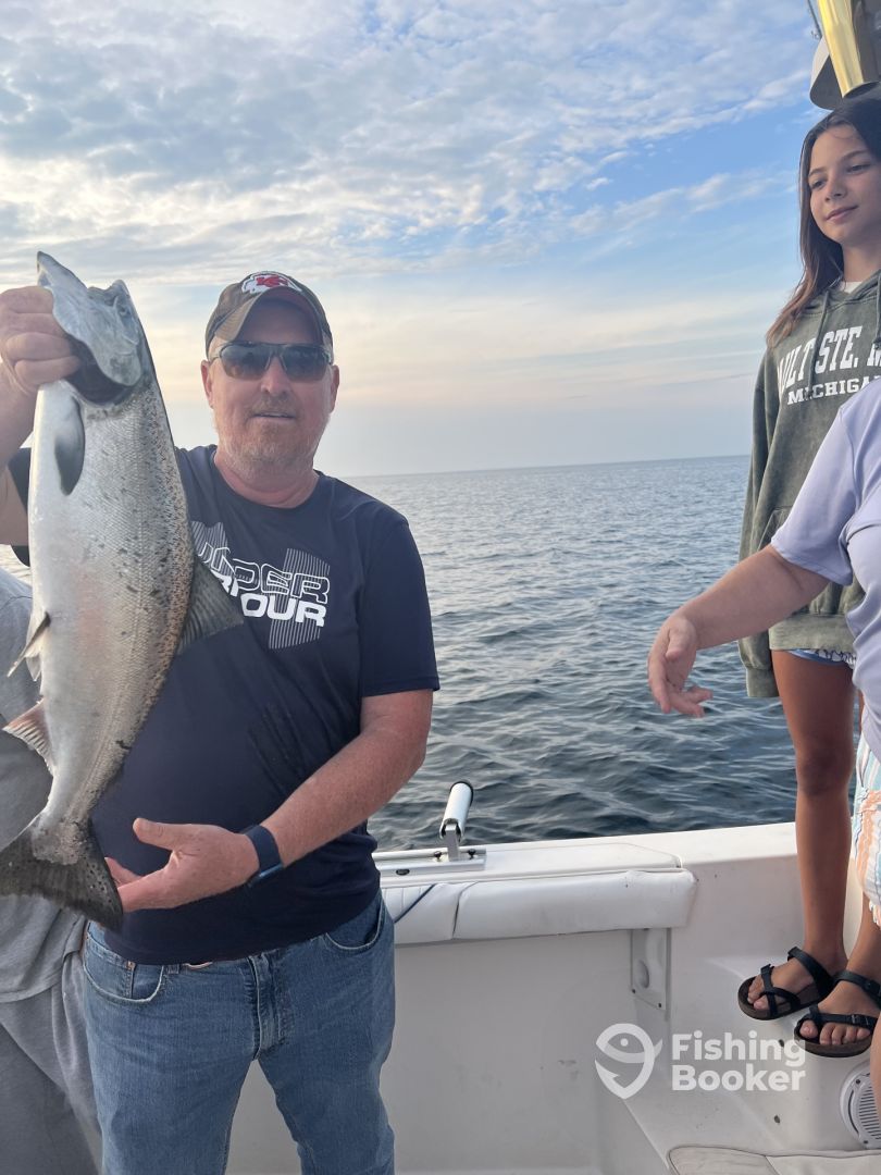 Meet Captain Kyle Loridon, your guide for thrilling adventures departing on a 26' Seaswirl boat. These waters are renowned for their bountiful Salmon and Trout, and Captain Kyle is your expert mentor for reeling them in. With his deep knowledge of the area, he's got a few tricks to share. Join him on the water for an inspiring journey you'll never forget!