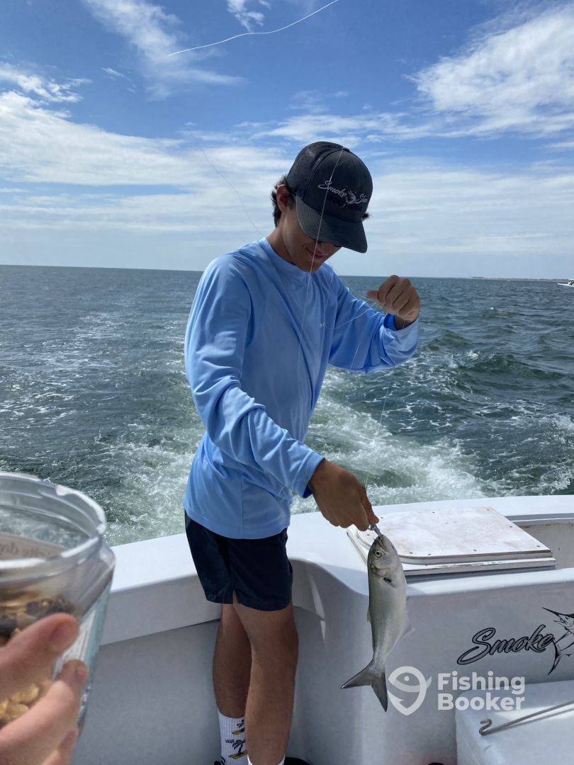 Crew was awesome. Caught a few mackerel but the 9% chance off rain actually came and probably threw off the day.