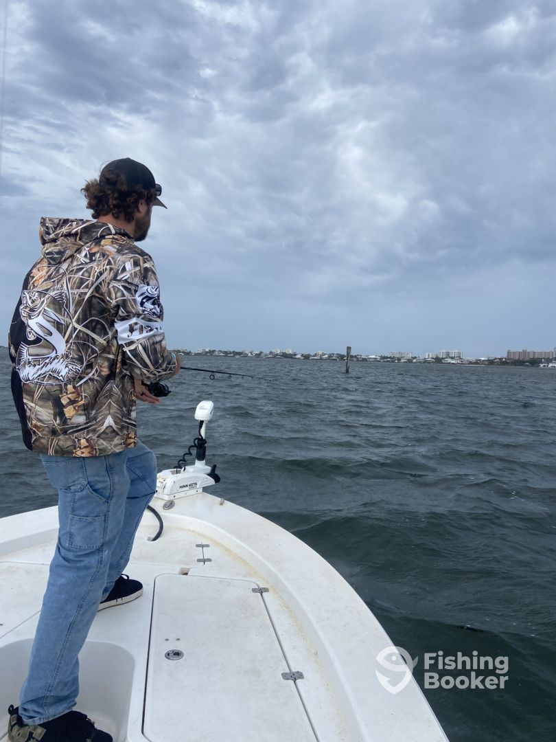 - Backbay/inshore fishing is always a thrill. Redfish, Speckled Trout, Mangrove Snapper and Flounder to Spanish Mackerel, Jacks, Pompano and much more. We can fish live bait, cut bait, and artificial lures, depending on the time of year. We will be fishing all areas of Perdido Bay to near shore of the Gulf of Mexico.