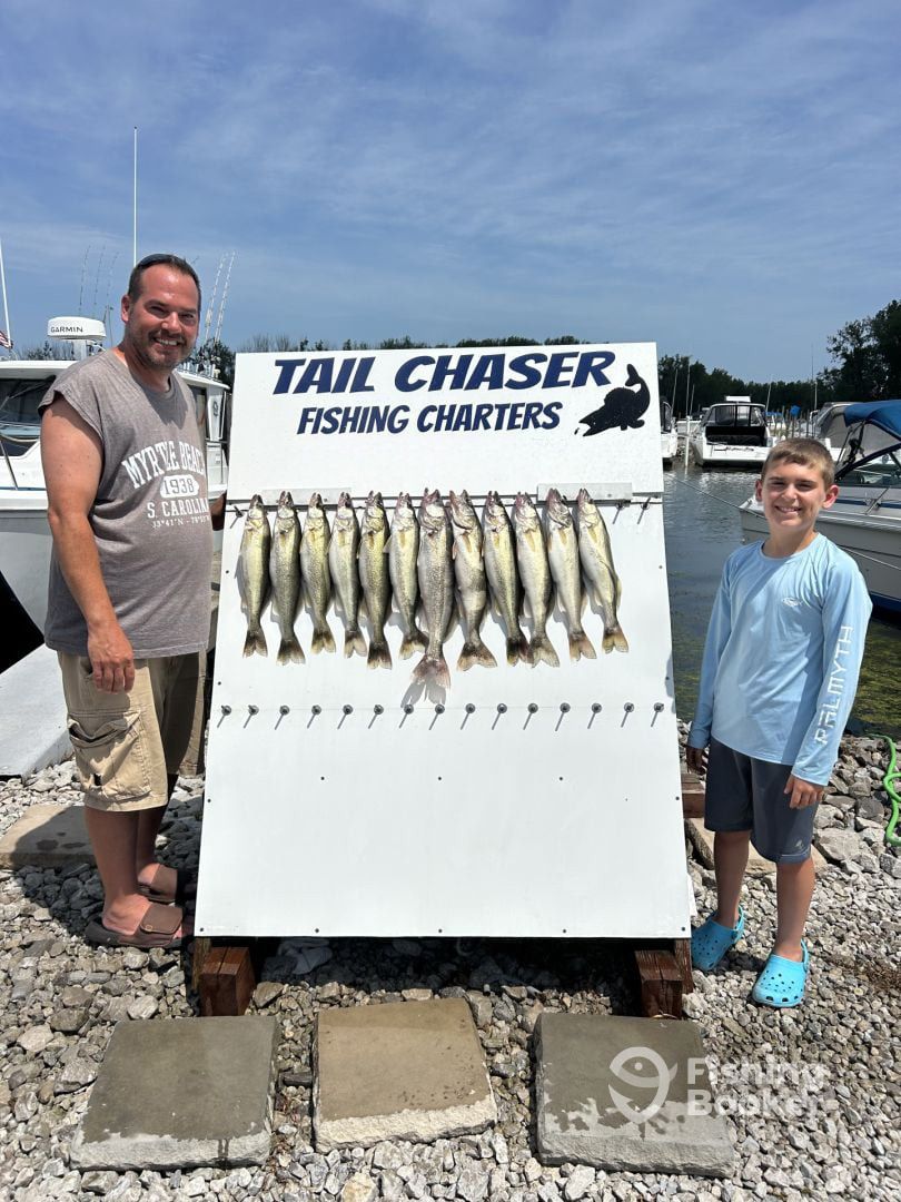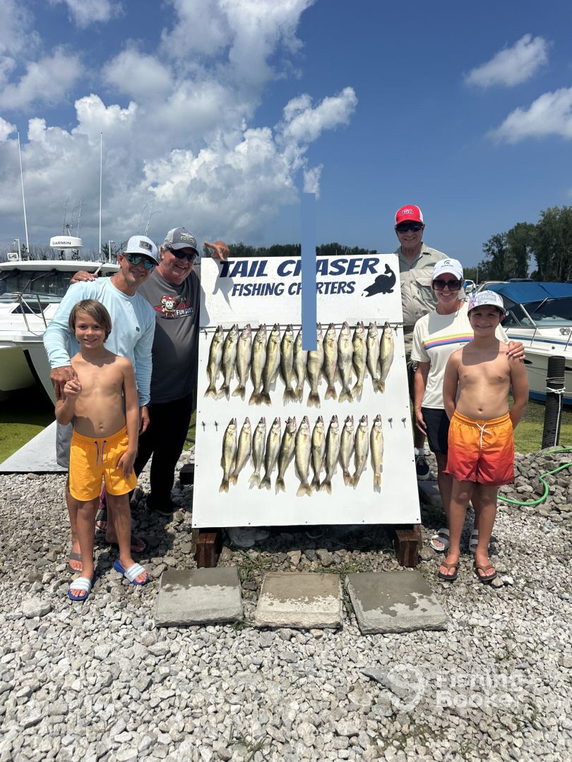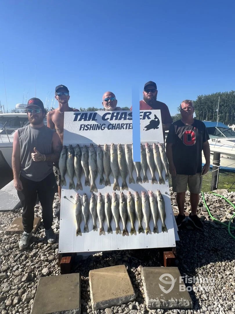 - We specialize in trolling for walleyes using big boards and all the latest fishing equipment. Full day trips are 7 hours or half day 4 hours dock to dock or until the customers legal limit of walleye. My trips are hands on, you can help rig the big boards, setting the depth of the lines to netting the fish, it's up to you how much you want to get involved. Check us out on Facebook @ Tail Chaser Fishing Charters. Customers responsible for fish cleaning, there is a fish cleaning station in the marina for your use or Bays Edge Fish Cleaners is 10 minutes from the marina.
