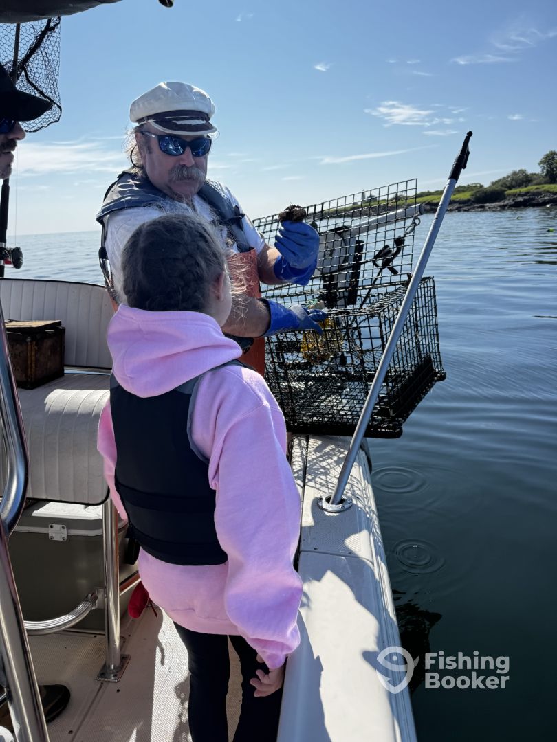 - Captains Tom and Donna troll for Striped Bass with custom tube/worm rigs.