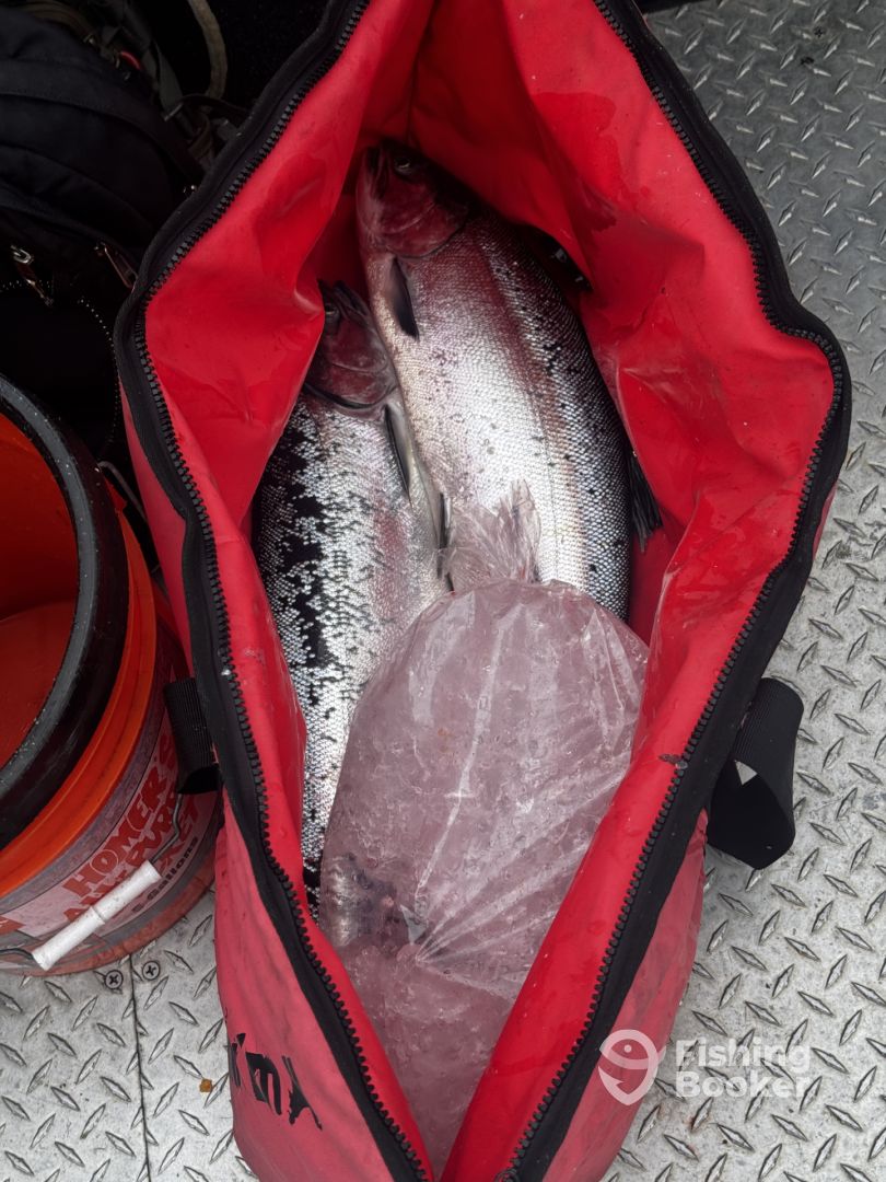 - I prefer to troll 360 flashers and 3.5 spinners. Also trolling plug cut herring.