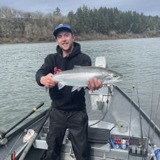 - With many years experience along the Rogue and Umpqua rivers, Captain Austin runs fishing trips in a 17' drift boat, targeting Steelhead and Chinook Salmon. The boat is equipped with a motor, brand new oars and seats for the new season, diamond platted flooring and a propane heater for those chilly river days. Join Captain Austin for an adventure in the great outdoors!