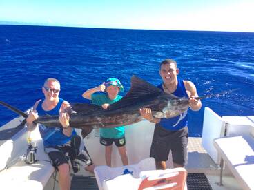 We caught a sail fish on elctrics "bit of a surprise"at 200m . Young fellas were happy with the catch , so did the grand pa holding on to the rods for them ...