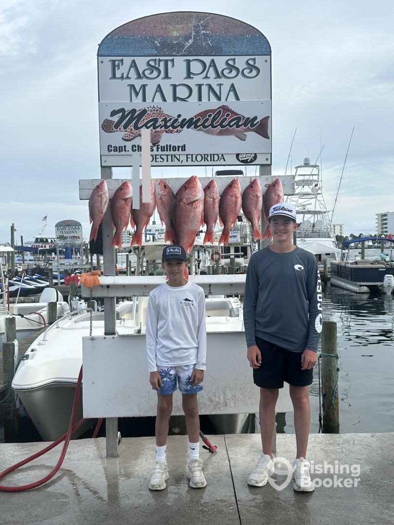 My family and I have fished with several charter boats out of Destin. I found Fishing Booker online and it did a great job at organizing boats and giving feedback reviews to help navigate who to choose from. I kept coming back to Maximus because of the size of the boat and the great reviews it has. We went out with Captain Chris, and he put us on the Snapper fast. We caught more than half our limit on the first spot. We also caught some grouper and a few other species to bring home. There are some negative reviews about how the captains talk and treat you. Chris has a good personality and would encourage us with some joking and light teasing. We welcomed it and enjoyed the conversations. He did great with our boys ( 16 and 11) and with my wife who caught a magnum, 24 # Red snapper. We would absolutely fish with Chris again.