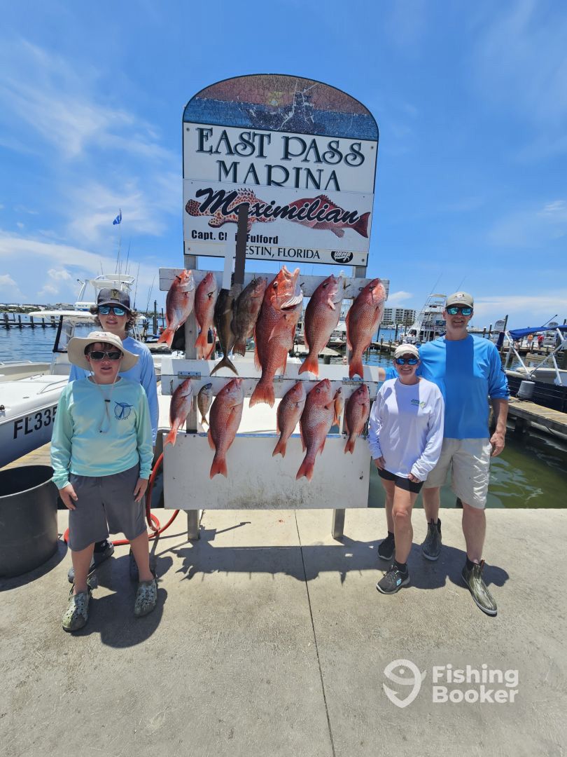 My family and I have fished with several charter boats out of Destin. I found Fishing Booker online and it did a great job at organizing boats and giving feedback reviews to help navigate who to choose from. I kept coming back to Maximus because of the size of the boat and the great reviews it has. We went out with Captain Chris, and he put us on the Snapper fast. We caught more than half our limit on the first spot. We also caught some grouper and a few other species to bring home. There are... More