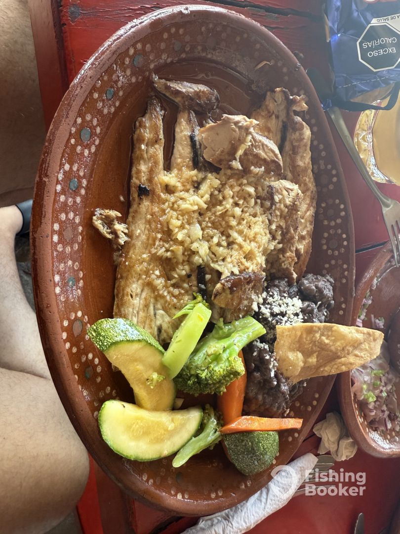 We did a half-day trip but wish weโd done a whole day the time flies by. Gabriel was recommended but we ended up going with his son Angel. Everything was GREAT. We caught 4 Skipjacks pretty quickly, saw a mahi we couldnโt get to hook then caught a bigger mahi right after and probably would have caught more but ran out of time. When we came in, all the other Tres Estrellas boats had fish. Angel filleted our fish for us and showed us where yo bring it to cook and eat. It was 250mex for a full meal of cooked fish with veggies, beans, etc. Such a great experience! Go with Tres Estrellas.