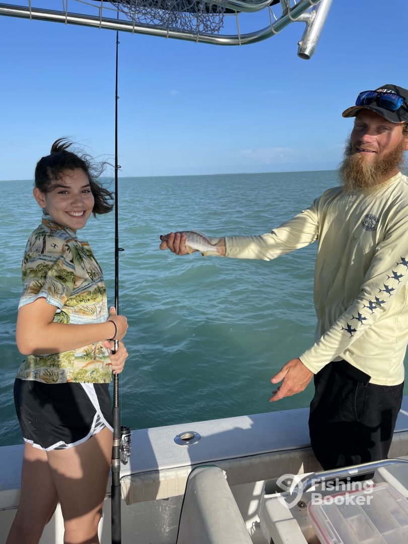 I wanted to take a half day fishing trip with my three teenage kids.ย Captain Dave did a great job making the most of the day in spite of it being the day after tropical storm Elsa.ย Conditions were great and we caught fish at every stop. We even got a chance to chase a few dolphins as a bonus.ย We took our fish to Danteโs and had a delicious lunch afterward.