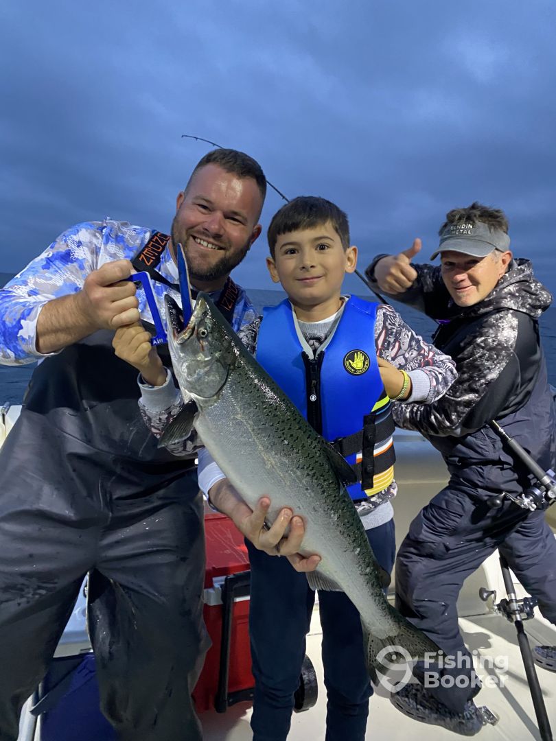 Booked the trip to give my 9yr old son a taste of Lake Michigan and salmon fishing.ย Capt Steve and Brad were top!ย Their knowledge and experience had us pulling fish before we could set the second line โฆ and it lasted for half the morning.ย They were super pleasant and really focused on their clients and providing a rewarding experience.ย Most importantly, they showed extreme patience with a 9yr old, teaching, guiding, instructing and answer questions. I highly recommend this charter... More