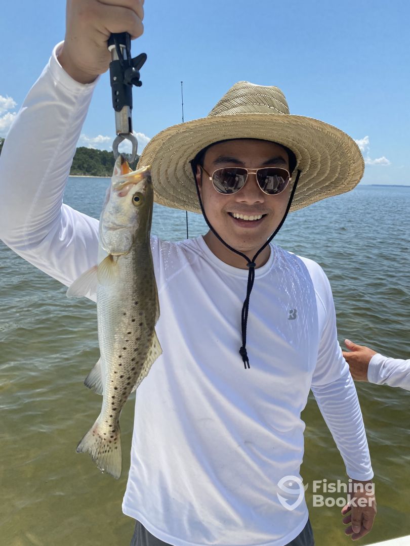 We went fishing in the bay. We caught nine keepers all being brown Speckled trout. We had a awesome time catching other fish like catfish, skipjack and more. I feel like he made an effort out of his way to try to make it the best experience possible. We booked the charter during the busy seasons of the summer and had a great time. He was also helped fillet the fishes and we brought the fish over to our rental to cook them up on the grill which tasted fantastic. Highly recommend anyone to go out... More