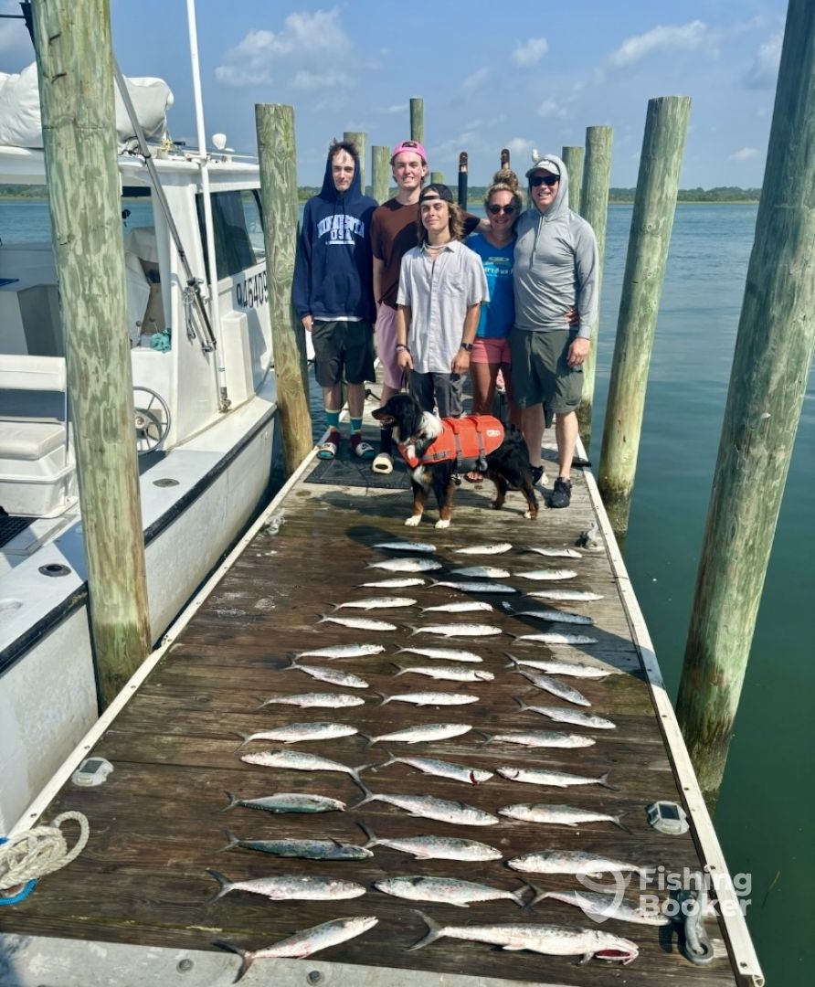 Exceeded our expectations, captain and mate were so fun, informative and absolutely made a great fishing trip next level. Caught tons of mackerel and a few bonita. Saw dolphins, shrimping boat, leatherback, and a baby shark. Book with these guys, you will be so glad you did. Icing on the cake was fresh mackerel tacos afterwards from the Lewisโ food truck!!!! Thank you Taylor and Drew!