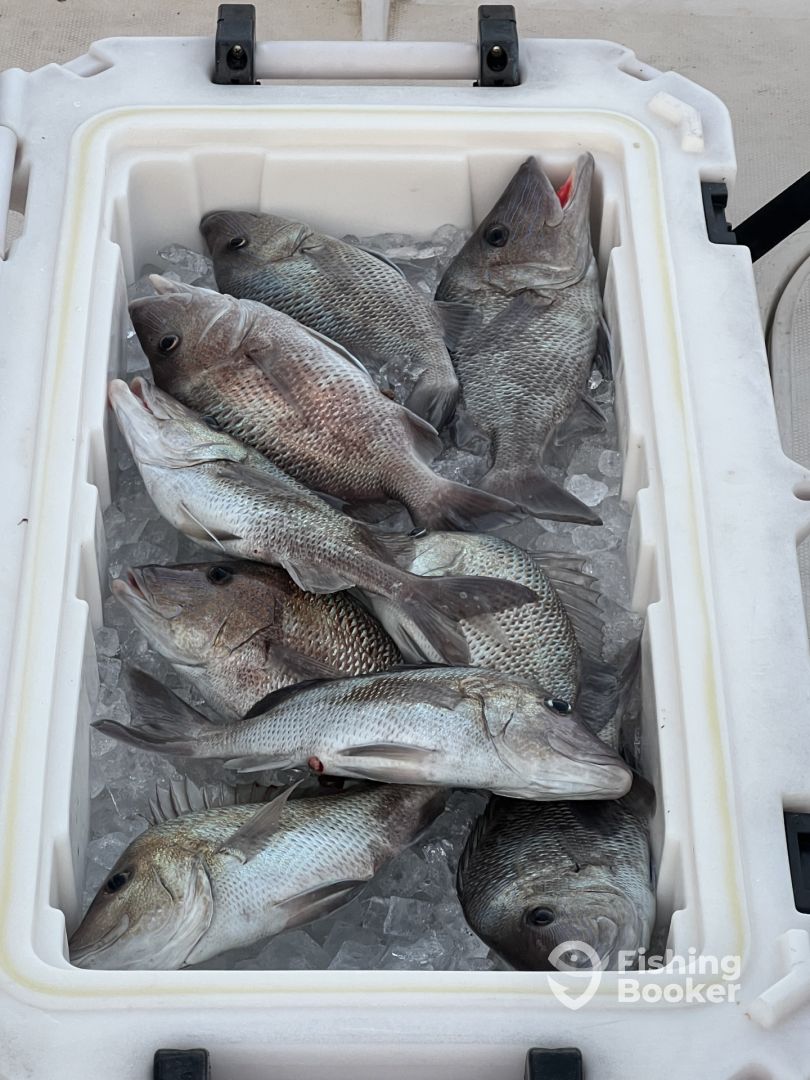 We had a fantastic half day trip.ย Our planned off-shore trip was changed to in-shore because of wind.ย We pulled in tons of fish and had great conversation along the way.