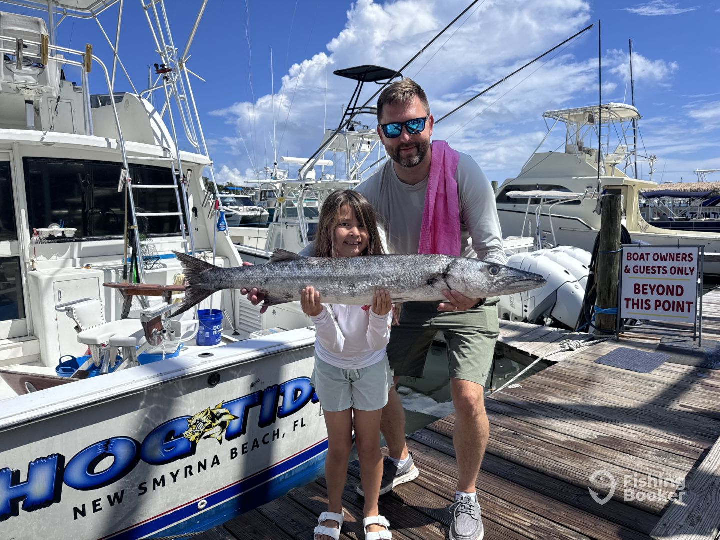 We ( myself and my two brothers) did a 12 hour fishing trip with Captain Tony and his first mate on Hog Tide. The first mate worked extremely hard, baiting the lines, helping us unhooking the fish we reeled in and watching lines to be sure we knew when fish were on the lines. As novice off shore fishermen his help was much needed. We went about 10 miles off coast. We caught plenty of fish. 5 barracuda, 4 King Mackerel, and 5 trigger fish. We also caught few Bonitas, and lots of smaller fish which were not keepers, and a few others that were. The weather was a bit spotty, had some rain, I wish I had remembered rain gear. And I got a bit sea sick. We saw some dolphins and although dolphins are fun to see apparently they kept impolitely nibbling the bait. They were basically the first mateโs nemesis. But he took it gracefully even if he did flip them off after about the 10th time they ate our bait off the line ๐. We had a great time. I would do this again, but maybe take up my brothers on their offer of dramamine next time. Thank you both for a great day!!!