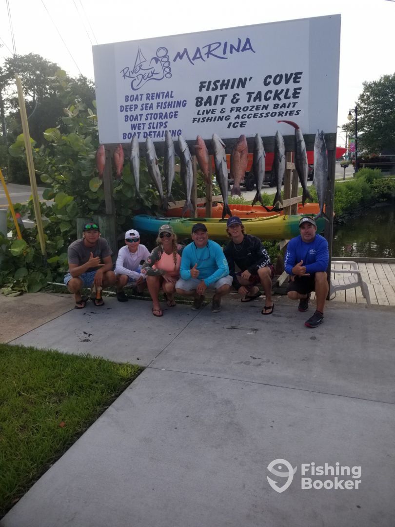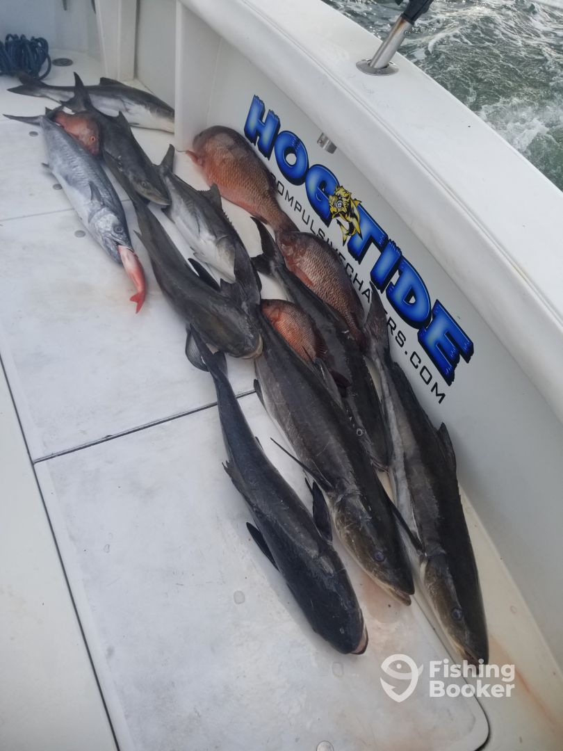 What a great day.ย Booked 10 hour trip and even extended it to a 12 hour trip.ย Capt. Tony and mate Hunter truley know their stuff.ย We were in fish the moment we dropped our poles in the water.ย Where else can you see a feeding frenzy of Cobia swirling around your boat as you keep landing them (15 in total).ย All the while seeing a group of Bull Sharks occasionally swim by, and I thought I was on Shark Week, when 10+ foot bull shark makes a breech out of the water, a full breech about 4 ft out of water doing 360 before splashdown.ย Then 30 min later a 2nd bull shark breeches. INCREDIBLE, all the while we are still fighting and pulling in fish.ย After the Cobia frenzy, we went trolling for an hour and caught couple of Bonitas, then back to the bottom fishing.ย Once again as soon as the lines hit the water we started catching fish.ย This time Mangrove Snapper and huge Red Snapper, even throw in a 7ft 300lbs shark.ย We landed over 30 fish and came home with 10 keepers.ย We left with about 60 lbs of fillets.ย Once again, this was a great day and thanks again for Capt. Tony and Hunter making this a day to never forget.ย I can not recommend this experience highly enough.