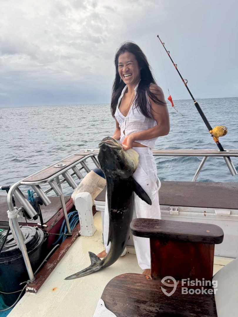 My family and I went out on a days fishing charter and we had the best time catching fish and experienced the beautiful islands around Phuket. We were served the catch of the day on the top deck in a 5-star scenery and we couldnโt ask for fresher and tastier produce. We got to snorkel around the reef with turquoise waters and saw a turtle and a variety of different fish species. The skipper and deckhand spoiled us with their knowledge, good food and a great service. All-in-all it was a fantastic day and I can highly recommend anyone to book a fishing charter experience (no matter if you are a beginner or pro).
